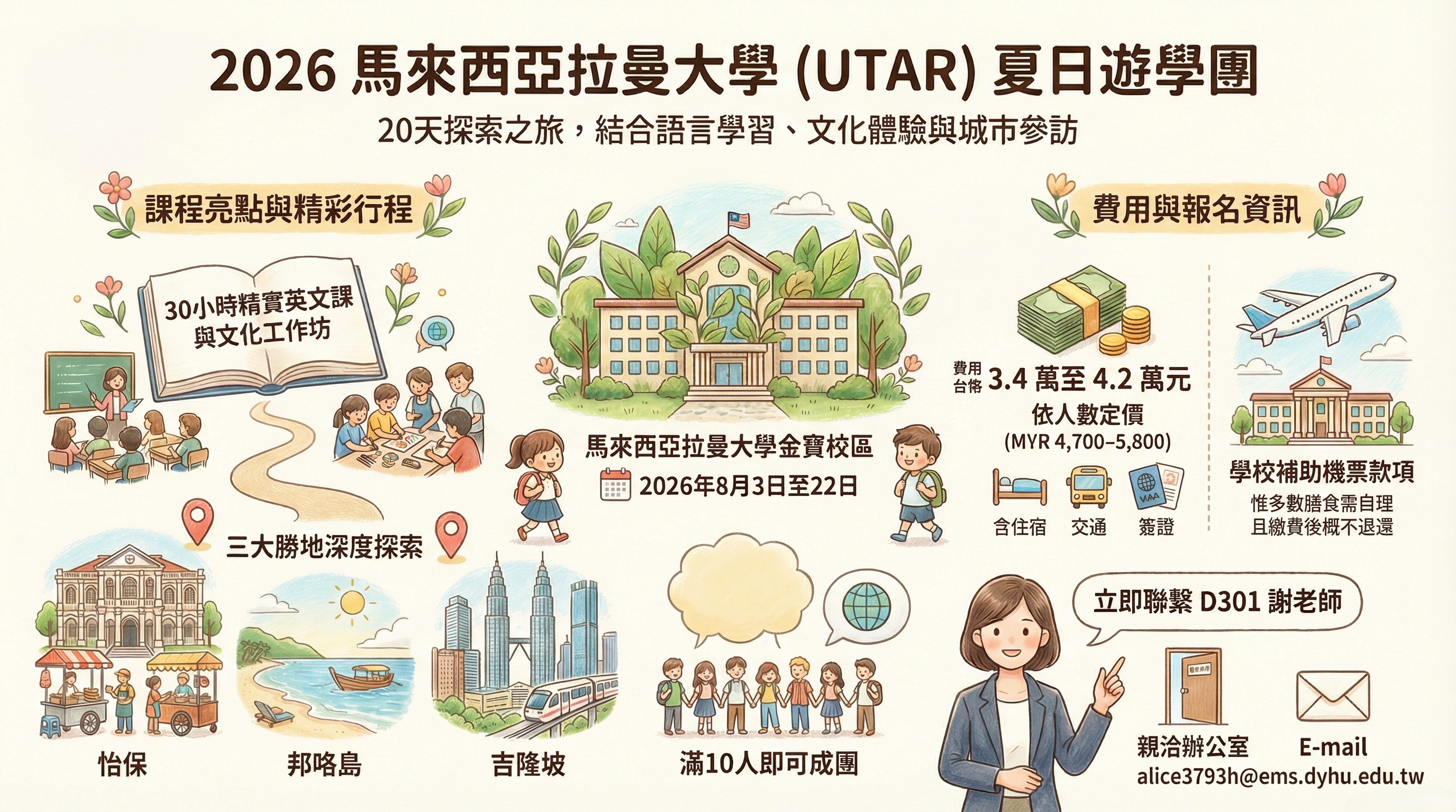 意者請洽 D301 謝老師 或 email: alice3793h@ems.dyhu.edu.tw